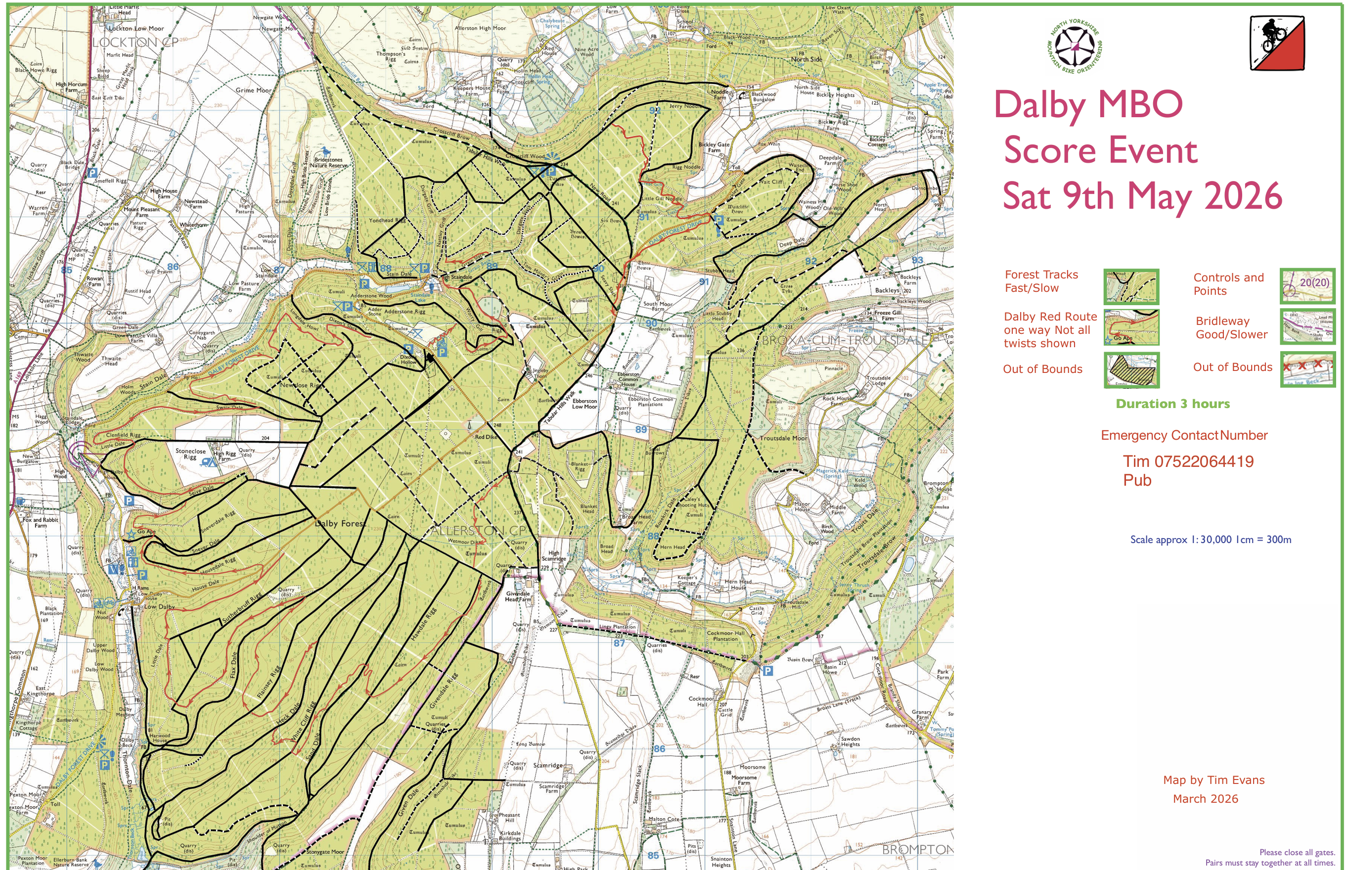 Start/Finish –Starts from 0930-1030 outside the Church Hall. The time limit is 3 hours with the usual penalties. There are no pre-assigned start times; first come, first served. You will get control descriptions at registration.