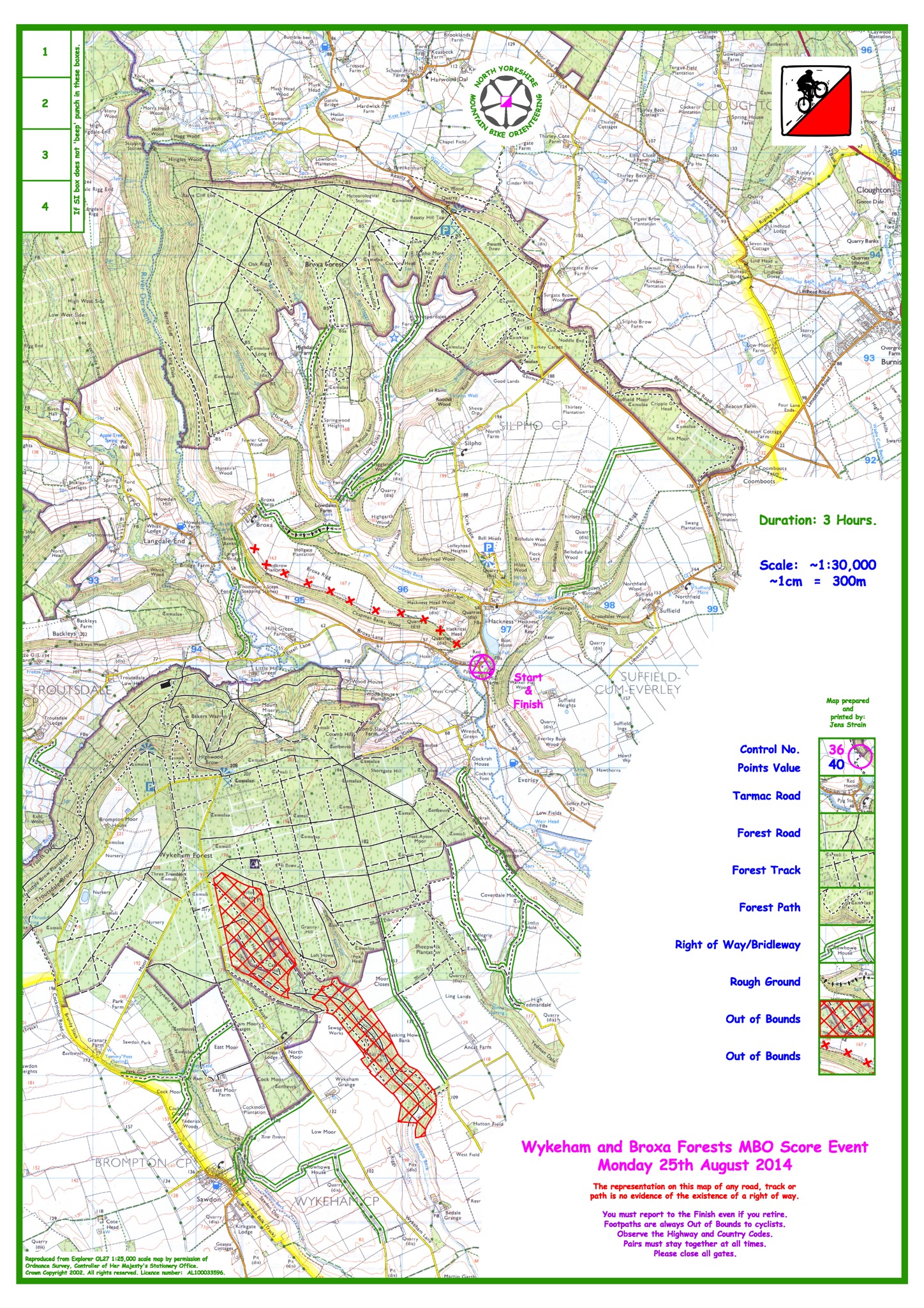 I thoroughly enjoyed my ride, despite those 4 mistakes, having decided to head clockwise into Wykeham then across the valley through Broxa onto the northern escarpment so that I finished down Whisperdale. Everything went according to plan and some of the views were fantastic. These are working forests so there have been a few changes which Dave hadn’t spotted such as the new track between #47 and #42 and the new forest road between #45 and #51. Jens will add these and others to the map before next time – but thanks for another excellent map. Thanks also to the helpers especially Geoff Moorhouse who stepped in at the last minute so that I could have a ride.