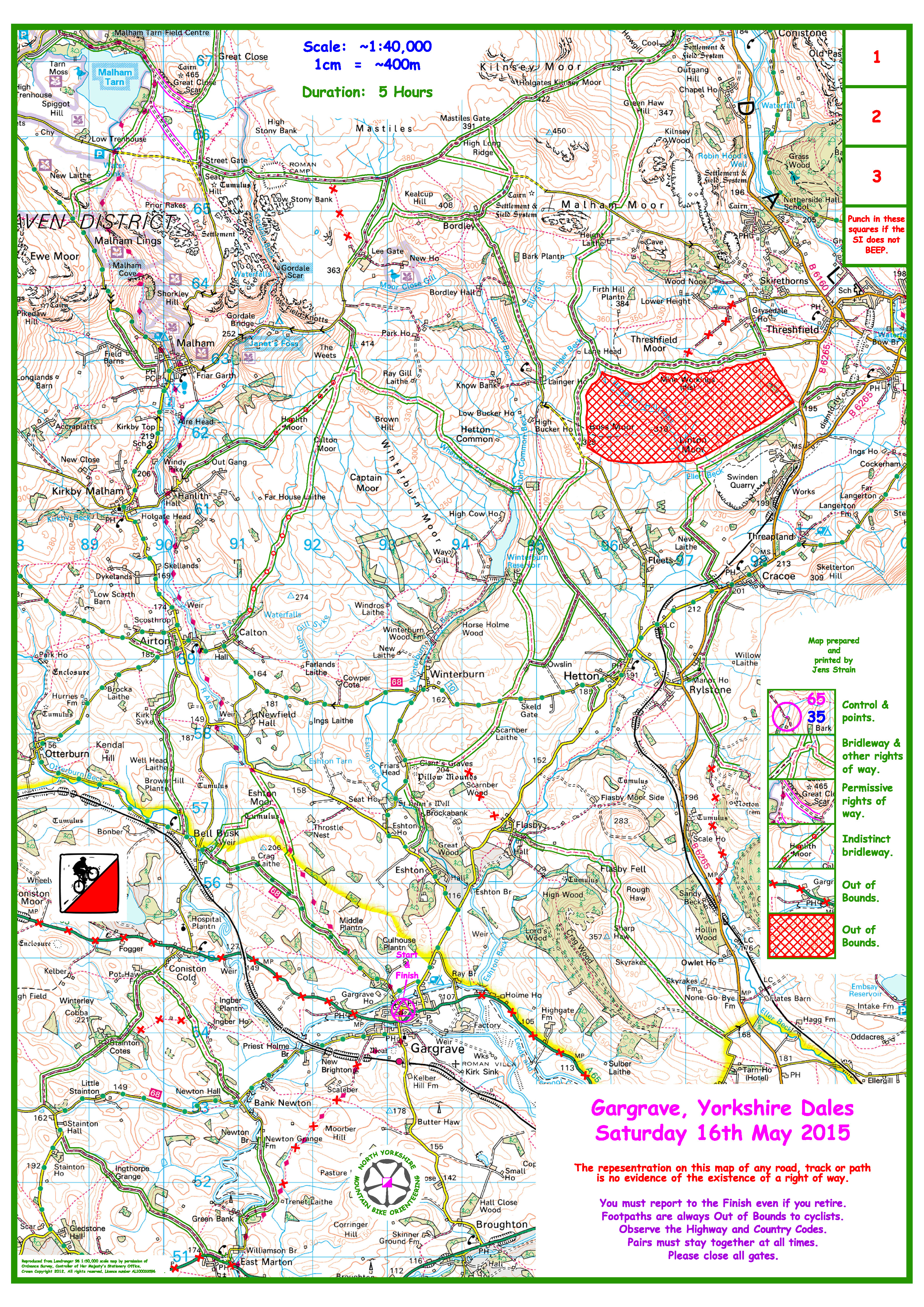 Thanks to Graham Fielding for an excellent course in a mainly new area. It was great to be riding lots of new dry tracks in typical, cracking Yorkshire Dales scenery despite the brisk cold wind. Unfortunately, Graham couldn’t be there at the weekend so thanks to Ray, Mick, Ben and David who helped us put out the controls on Friday and then collected most of them in on Saturday afternoon after they had ridden.