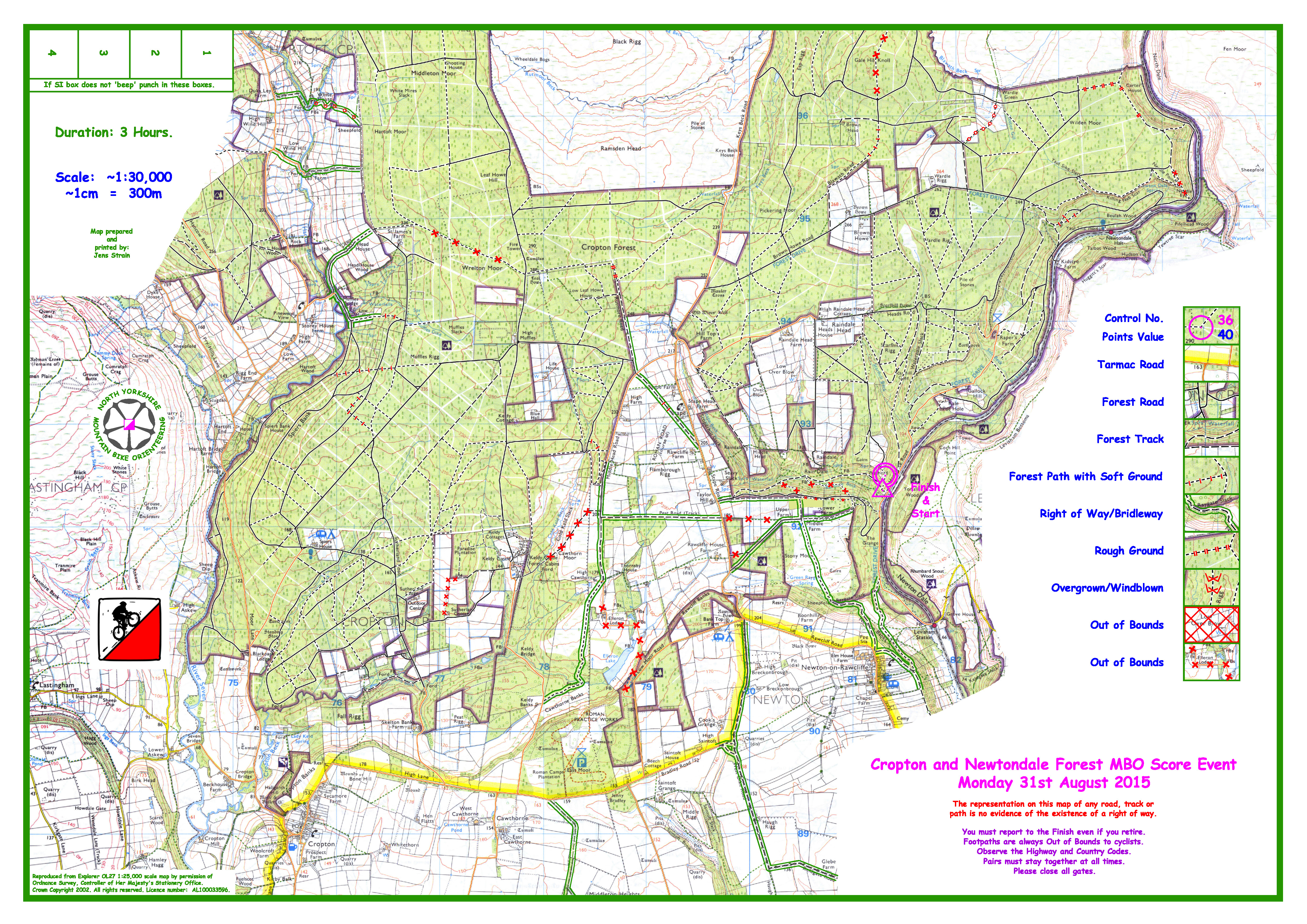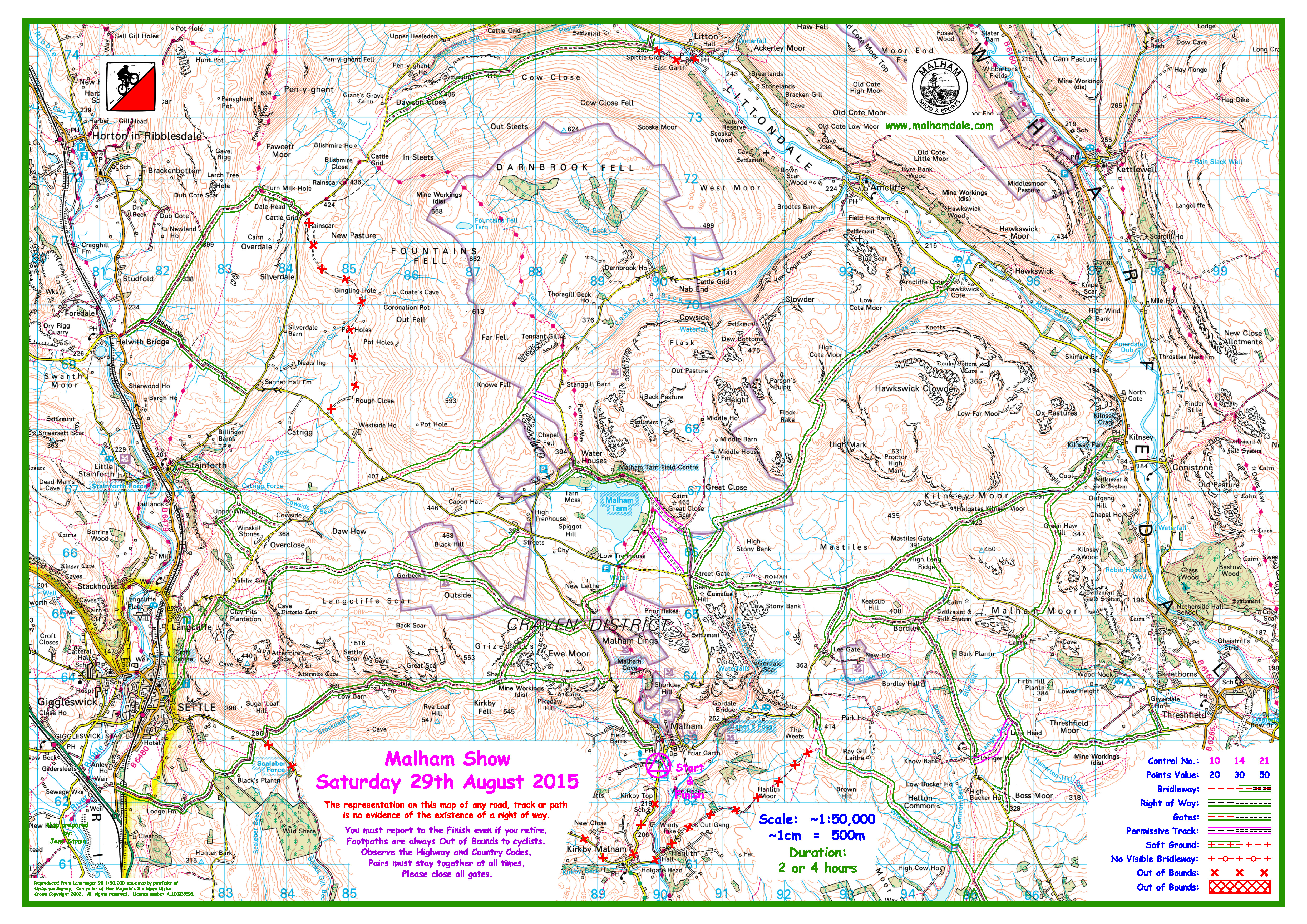 Congratulations to Andy Conn for another great ride. Sorry for the lack of SI kit. Thanks to Smurf for an excellent course and to Geoff Moorhouse for checking all of the cards and working out the results. MALHAM 2015 RESULTS