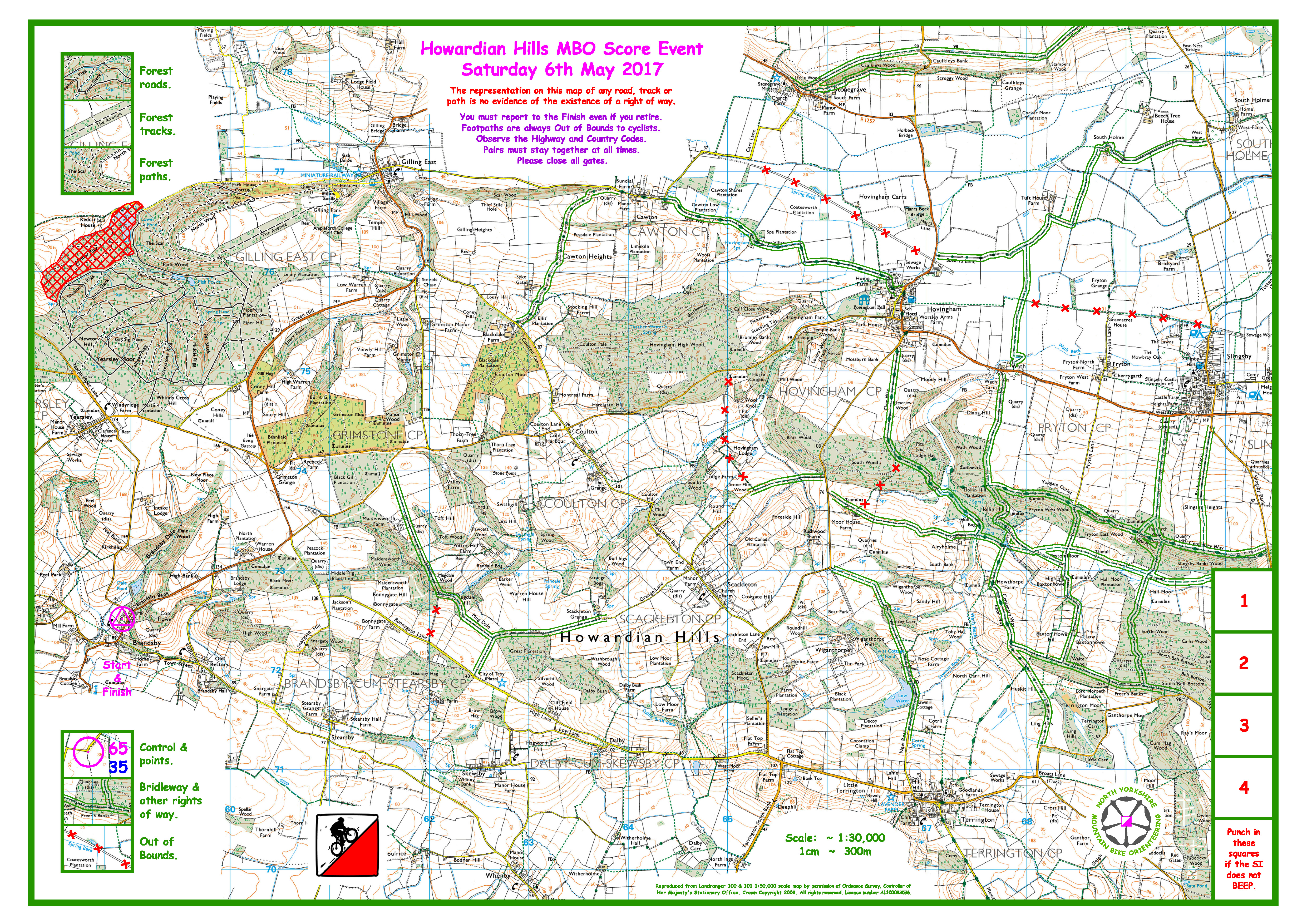Thanks to Karen & Richard Clark for an excellent course, Frank & Sandra, Geoff, Karen & John and the 4 control collectors, Dave, Andrew, Graham & Ray who made everything run smoothly yet again and Jens for another excellent map. Congratulations to Edwin Oliver-Evans on a brilliant ride who passed me on numerous occasions while he visited all but one of the controls – unbelievable. We will all score more NYMBO points next month once he’s gone back to university. Congratulations to the other leading riders, Men – Andy Conn M50-499, Andrew Windrum M40-474, Dennis Jaques M60-355, Ray Morriss (on his birthday) M70-354, Ben & Steve Collins Gen-295. Ladies – Sue Booth W50-316, Sheila Pearce W40-305, Karen Blackburn W70-260. Mixed – Andy & Corinne Parsons T50-285, Andrea & Steve Foster X50-274.