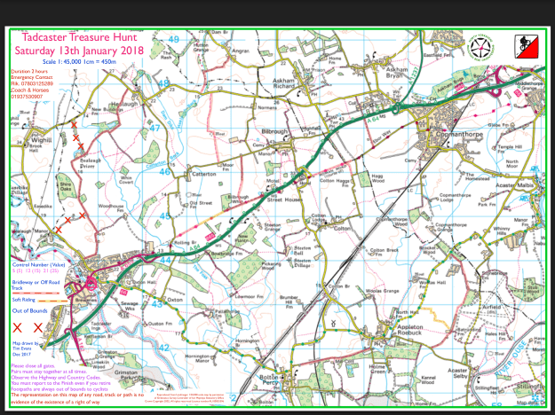 I really enjoyed planning the event as I grew up in Tadcaster and used to ride a loop round Catterton, Healaugh and back down the old coach road when I began riding mtb all those years ago. This time I wanted to use the network of minor roads to the East of Tad as I hoped it would give plenty of route choice to get you all thinking, I rode the area a few days before Christmas and the tracks were in good condition but unfortunately hedges had been cut and there were quite a few punctures on the day, I was also told by locals that the coach road that I told everyone was ok was muddier than ever before. At least the weather was a lot kinder than two years ago although it is definitely warmer riding than sitting outside a pub at this time of year!