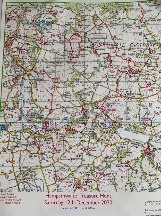 Lost property: A grey Rohan buff was found in the car park. And when Simon was walking the dogs up the hill out of the village towards Harrogate, one of Steve’s type map boards complete with map! It must have blown off a bike on a car rack!? It has black an white elastic straps. If either of these are your please send an email.