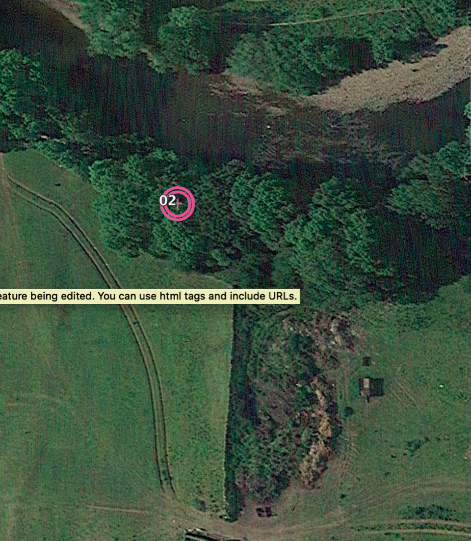 This will bring up the course on the screen with a background map from OpenOrienteering which is georeferenced, The controls are placed in google earth not on this map as it isn’t spot on as the extract below shows. The control is on the path not in the river. We have left the track visible option on so if you think you are at the control and it hasn’t bleeped look at your phone to see if it thinks you are anywhere near and go towards the control if possible, if your phone GPS and the ground think differently we can adjust using the HITMO function after you have finished this increases the search radius and often picks up the odd stray control.