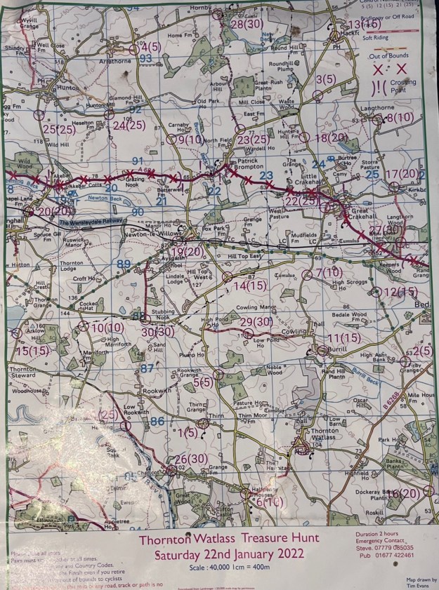 Thanks to Tim Evans for an excellent map and advising riders about Maprun at Registration; Dave Robertson for looking after the Start; and Vicky and all of the staff at the Buck Inn for a very warm welcome as well as delicious food served very quickly.