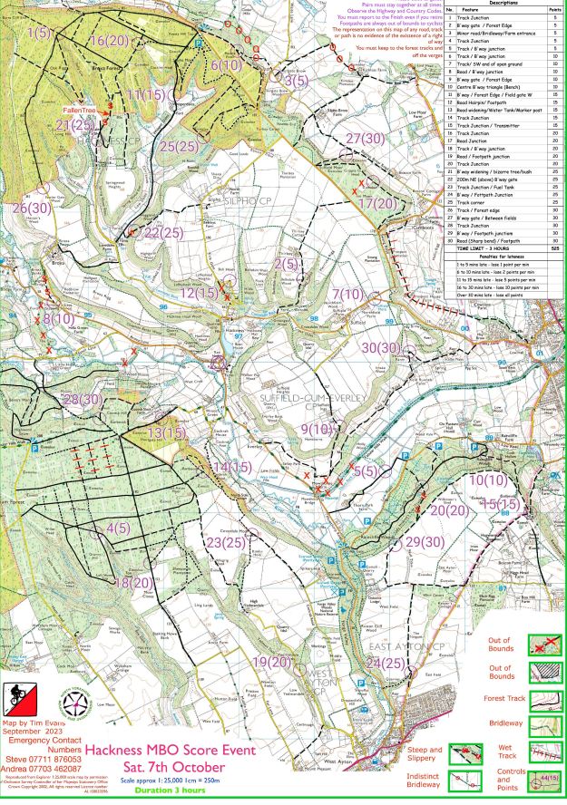 Well I’d better start with a heartfelt apology to those who visited the heinous track between the flooded road and Broxa village. ‘Mea Culpa’ for not checking the final copy of the map. Very disappointed in myself as I had ridden 3 other similar tracks and dismissed them from the original planned course. The only excuse is that Tim & I were making changes to the course up until Thursday as FC had some requests to change / move things about. Note to self, learn to do your own map and check everything with a bit more time to spare. For those that said rest of course was great thanks, and for those who were “spitting feathers” at the finish, quite understand.