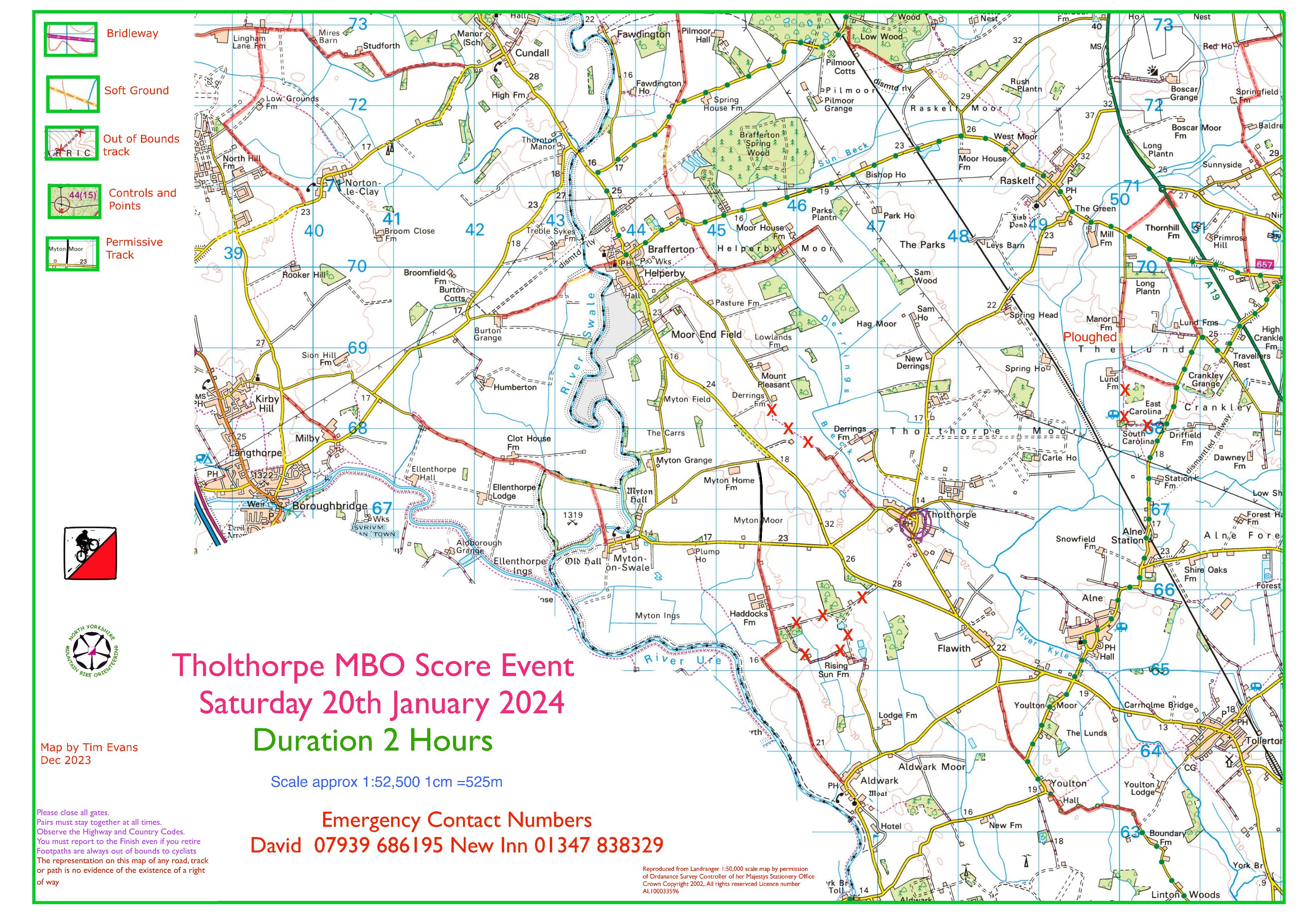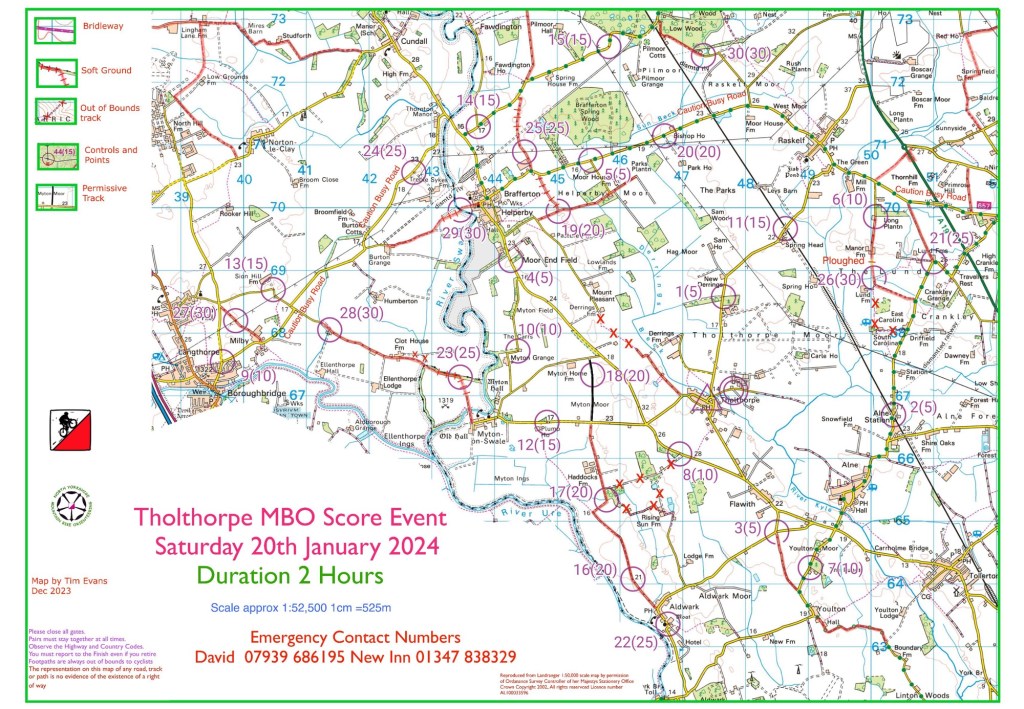 Thanks to Steve Willis for riding the course a week ago, he was due to be skiing on the day of the event [or maybe not as the temperature there was 12 degrees] & offering advice on the course. Every control was visited on the day with a wide variety of routes chosen. I tried to offer options between controls & clusters of controls – looking at the tracks on MapRun it seems that riders took every option that I anticipated & others too.