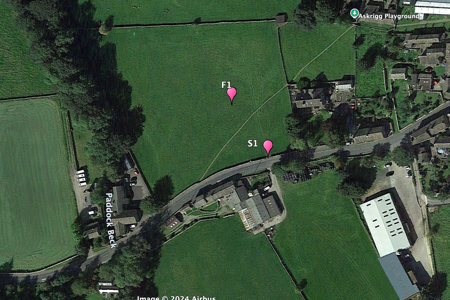 Camping note: there is a narrow gate into the field so anyone towing a caravan or bringing a large motorhome should turn into the wider gate opposite to turn round then drive straight across the road. Camping at the top edge of the field. Day parking to the left