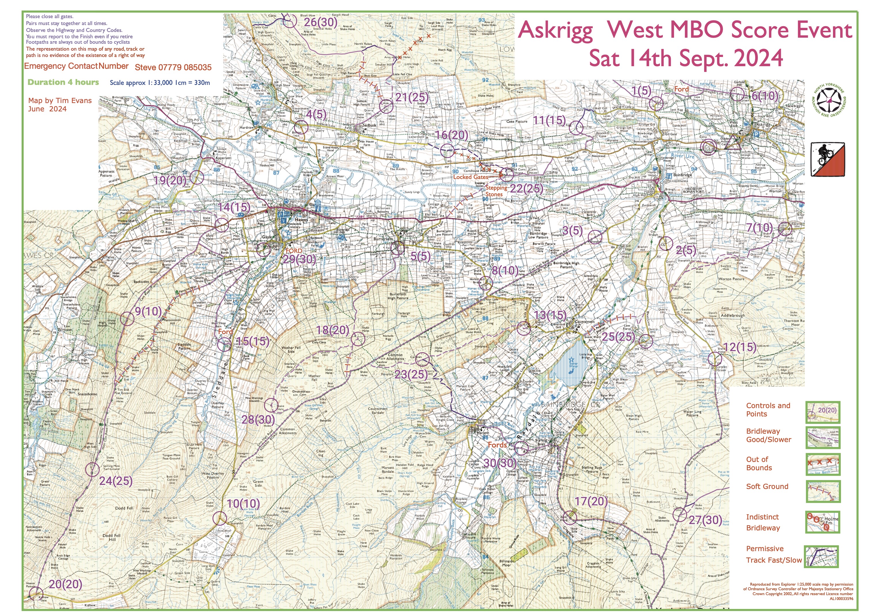 Here are the control maps and the Steve’s report from the Wensleydale weekend. On the day results are in the previous posts (Tim is working through some rider queries so the final results will be posted here shortly).