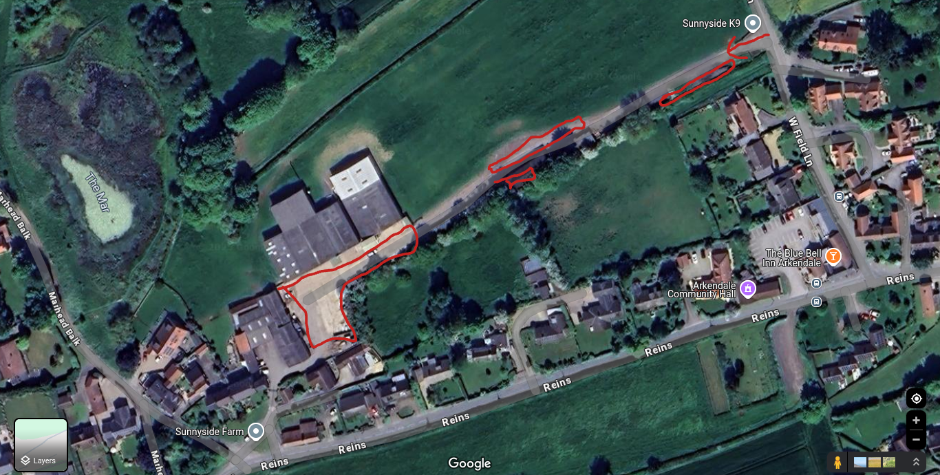 Parking is at Sunnyside Farm, Arkendale. Access from West Field Lane not Reins where you will be met by a closed electric gate. Go up the side of the Blue Bell pub and after the last house on the left, about 130m, turn left down a farm track. You should probably see Simon Coiley to direct you but if not: park nose/rear in on the hard standing on the left as soon as you go through the farm gate or further down the track nose/rear in on the hard standing on the right.
