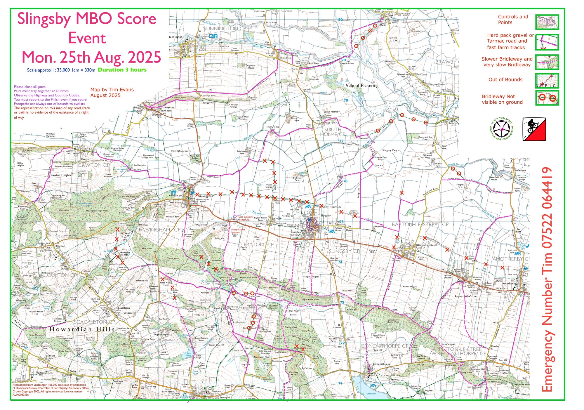 Fifty-seven riders took to the hills and fields around Slingsby and hopefully enjoyed the hastily arranged course that took in the stunning tracks on the Howardian Hills and some of the less used Bridleways to the North.