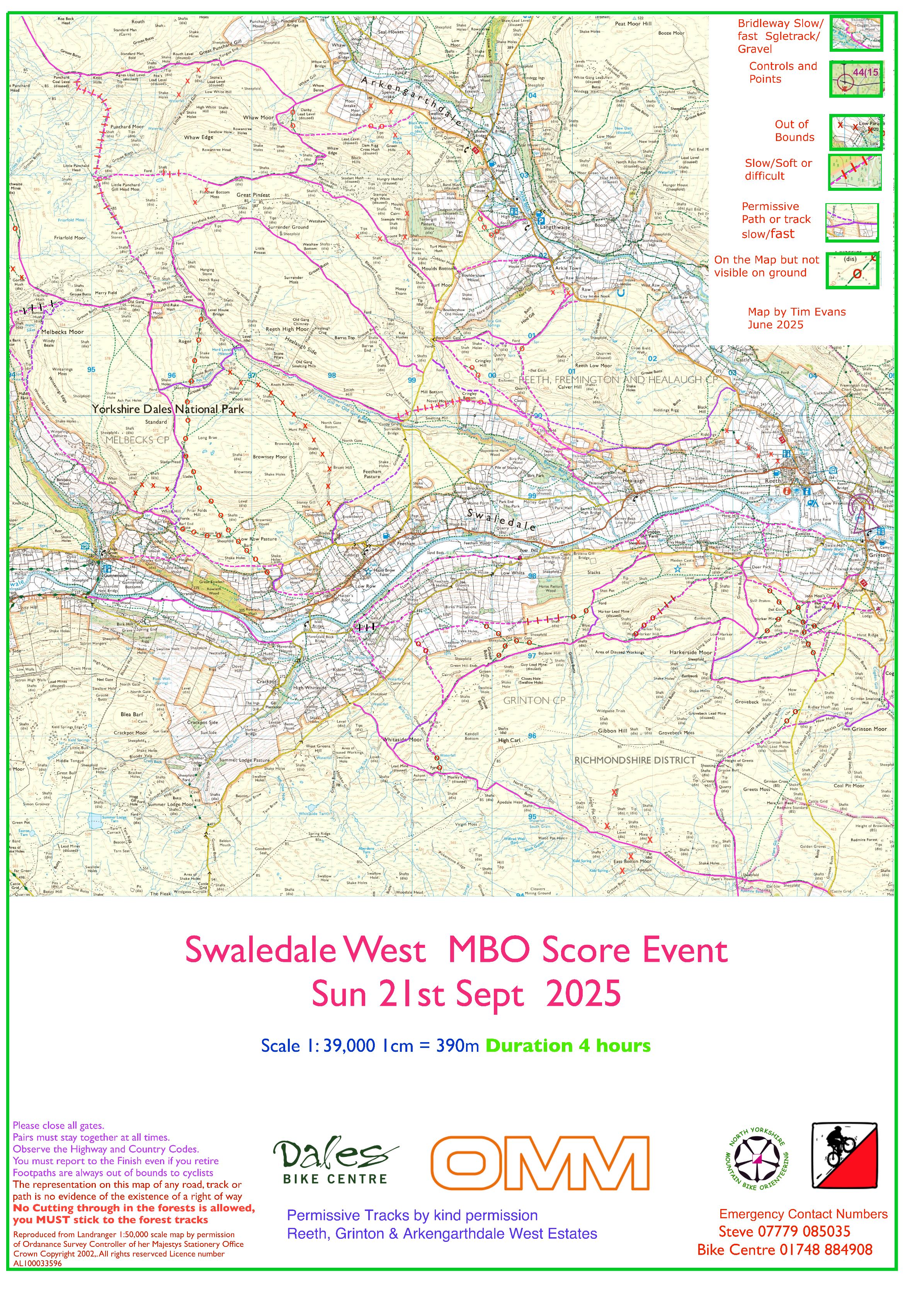 Prizes will be presented at 3.30 on Sunday to the weekend winners plus OMM vouchers to the best of those who rode in both events – Wye Valley in May and Swaledale this weekend.
