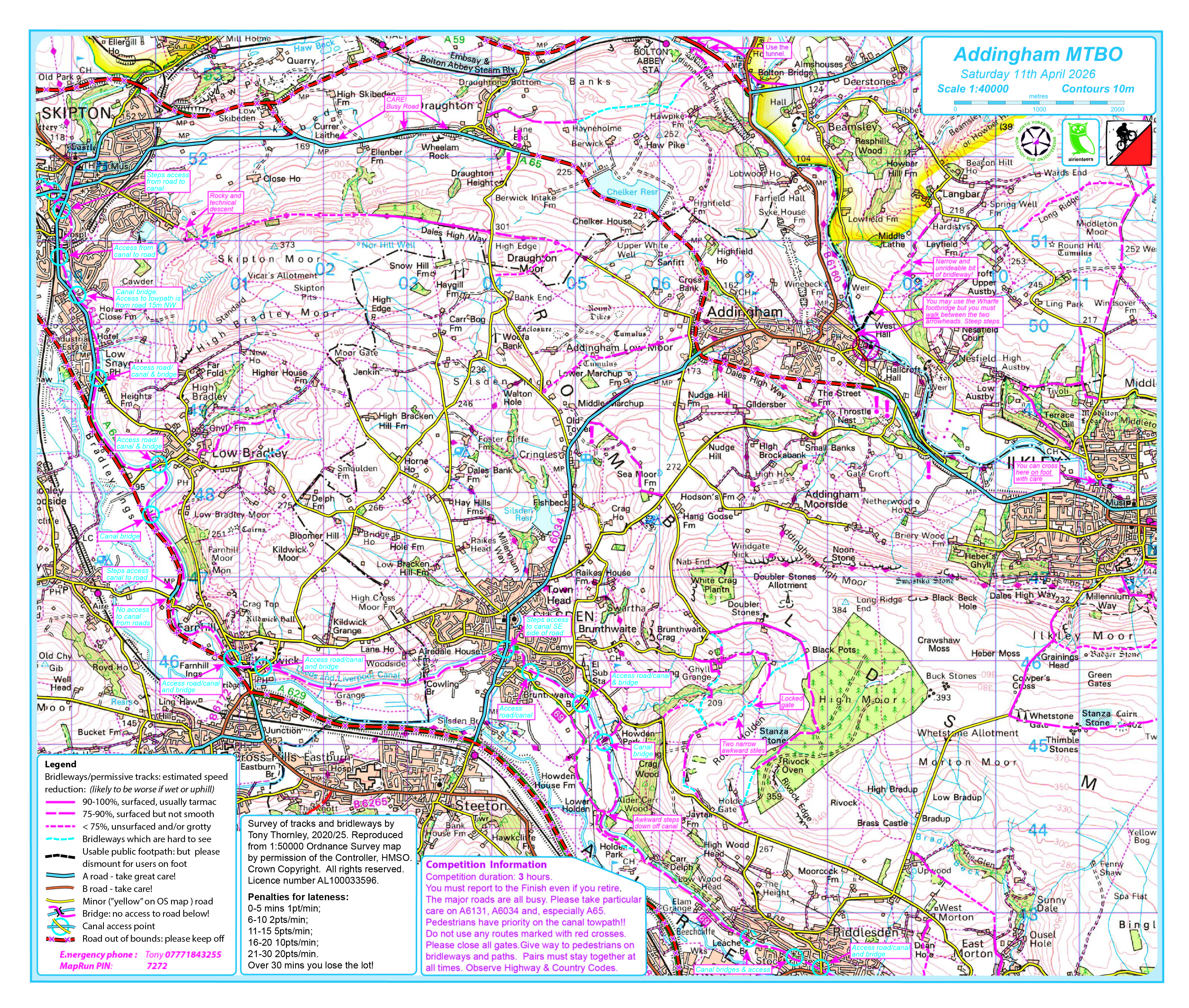 MapRun – the event is entirely MapRun based. FAQ here Don’t forget to download the event in advance (folder is UK: North Yorkshire: NYMBO: Summer 2026: Addingham). All the controls have been checked for accuracy but GPS is variable. A Strava backup would be wise, but I’ll listen to pleading.